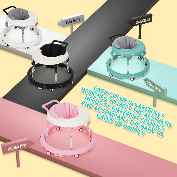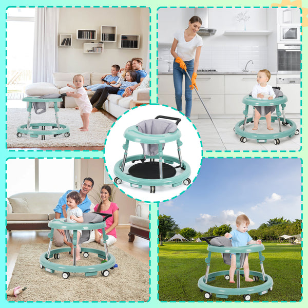 HKAI Baby Walker for 6-18 Months - One-Touch Foldable Design, 9 Adjustable Heights, Non-Slip Wheels with Removable Activity Tray, Green